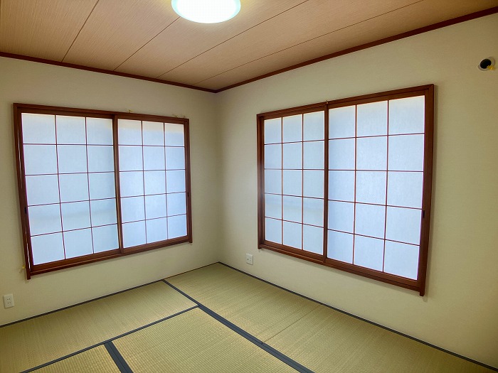 クロス張替え、コンロ新品、フロアタイル貼り、網戸貼替え、室内クリーニング、クッションフロア張替え、白蟻点検、給湯器交換