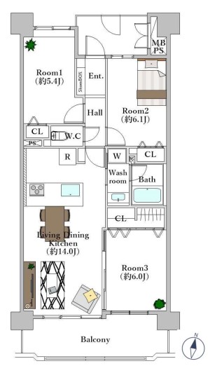 | 建物面積 | 70.22㎡(21.24坪) バルコニー面積/11.07㎡(3.35坪) | 土地面積 | - |