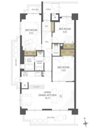 総戸数 | 76戸 | その他面積 | バルコニー面積:25.71㎡、ポーチ面積:3.57㎡ |